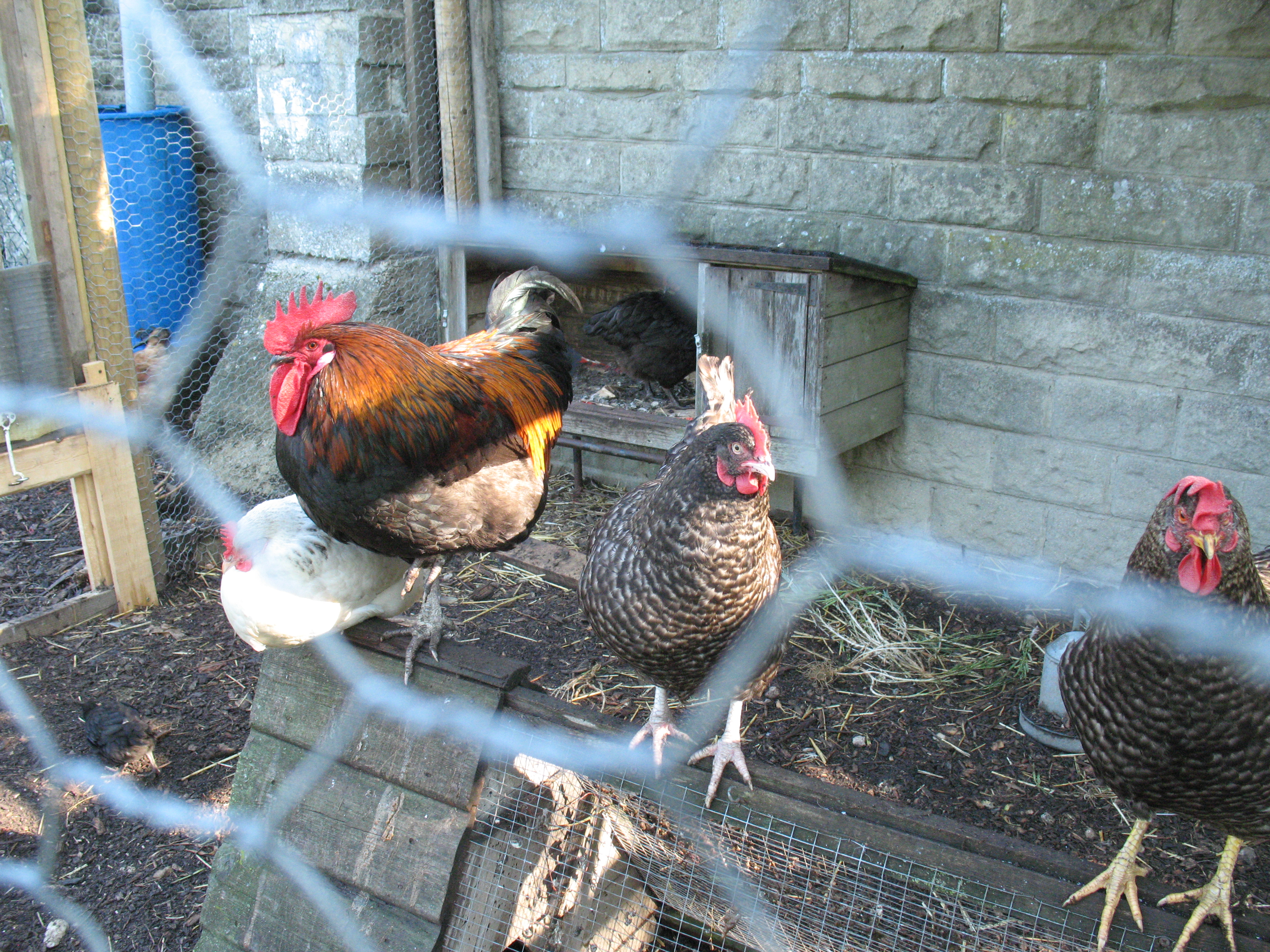 We set off after lunch on Friday with Tessa and Tash in the back of the car, A. driving to allow sufficient foot room for our passengers, and after tedium on the M25 and a brisker trip down the M4 drove through one of those anonymous out-of-town business parks that think they are doing the environment a favour by having ponds with fountains outside; turned into an expanse of what A. calls ‘bungaloid growth’ then, very slowly, down a short drive which was well peppered with chickens.
