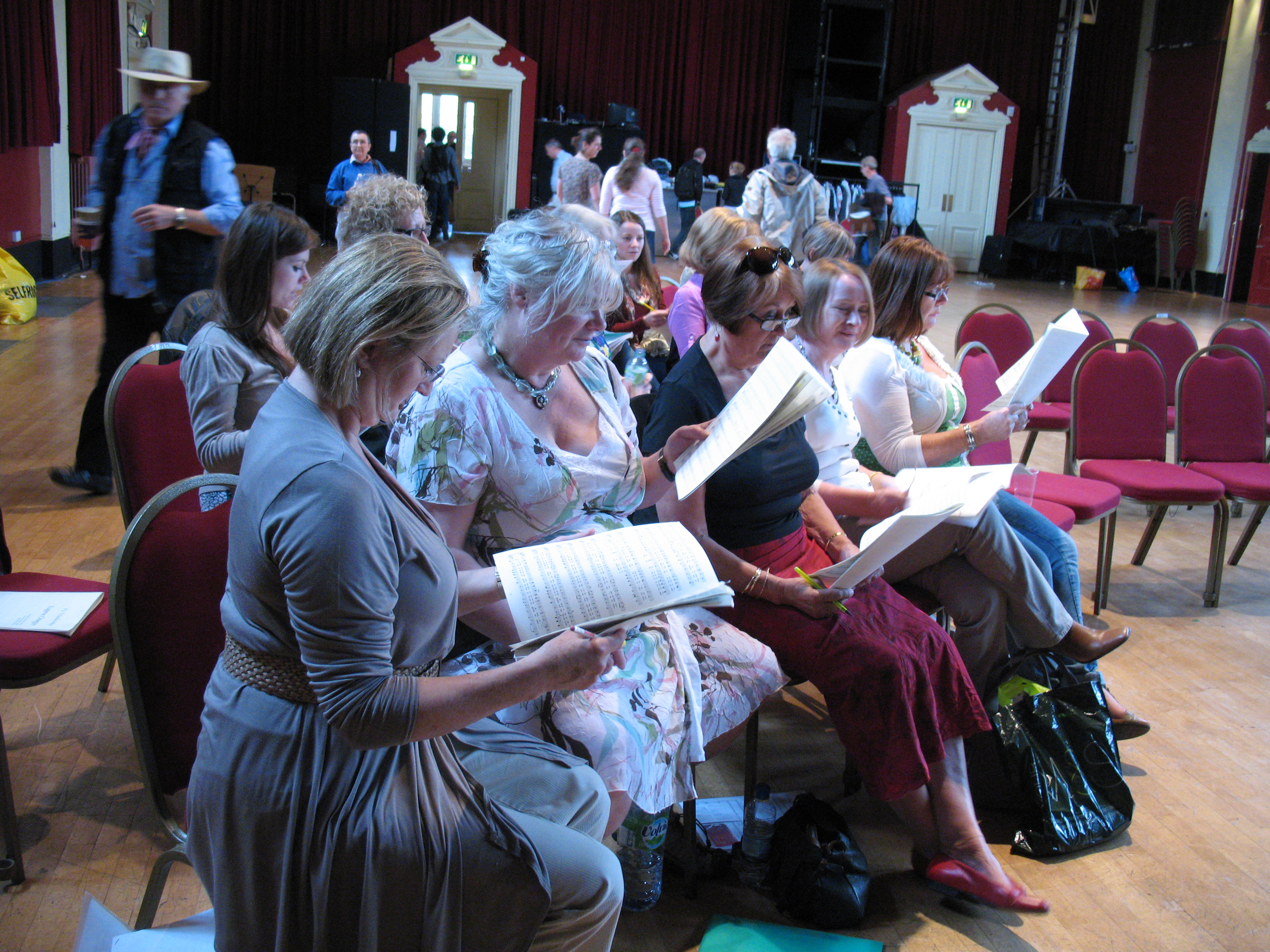 This is the final ‘Music’ rehearsal, and Nick is trying to get us off ‘the book’. Some of us require weaning, others are trying to go cold turkey.