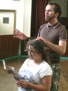 Pearce doing mona’s hair copyright Cherry Potts 2011