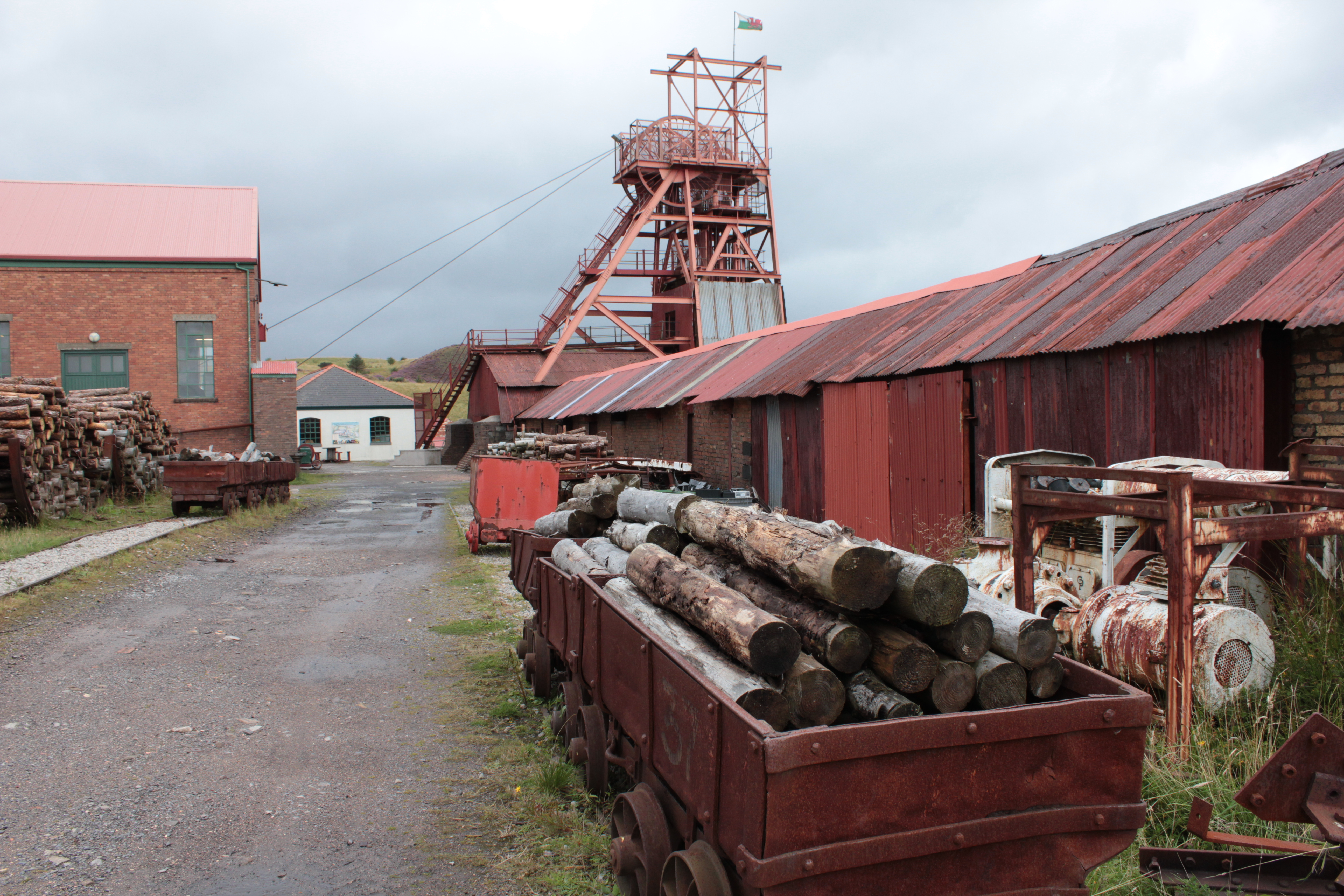 We decide this is the day for the Big Pit at Blaenavon, but all set off separately as the site is large and we don’t know that we all want to do the same things at the same time. Impressively everything on the site apart from parking is free. A & I start with the ironworks, which have been there a Very Long Time (1790ish). They are exquisite in the way that only industrial architecture can be – towering brick chimneys, perfectly balanced arches, furnaces like miniature ziggurats, and within reason you can wander wherever you want, peer into anything you want, touch anything you want – including in the range of workers cottages. In the damp aftermath of rain it is very atmospheric indeed.