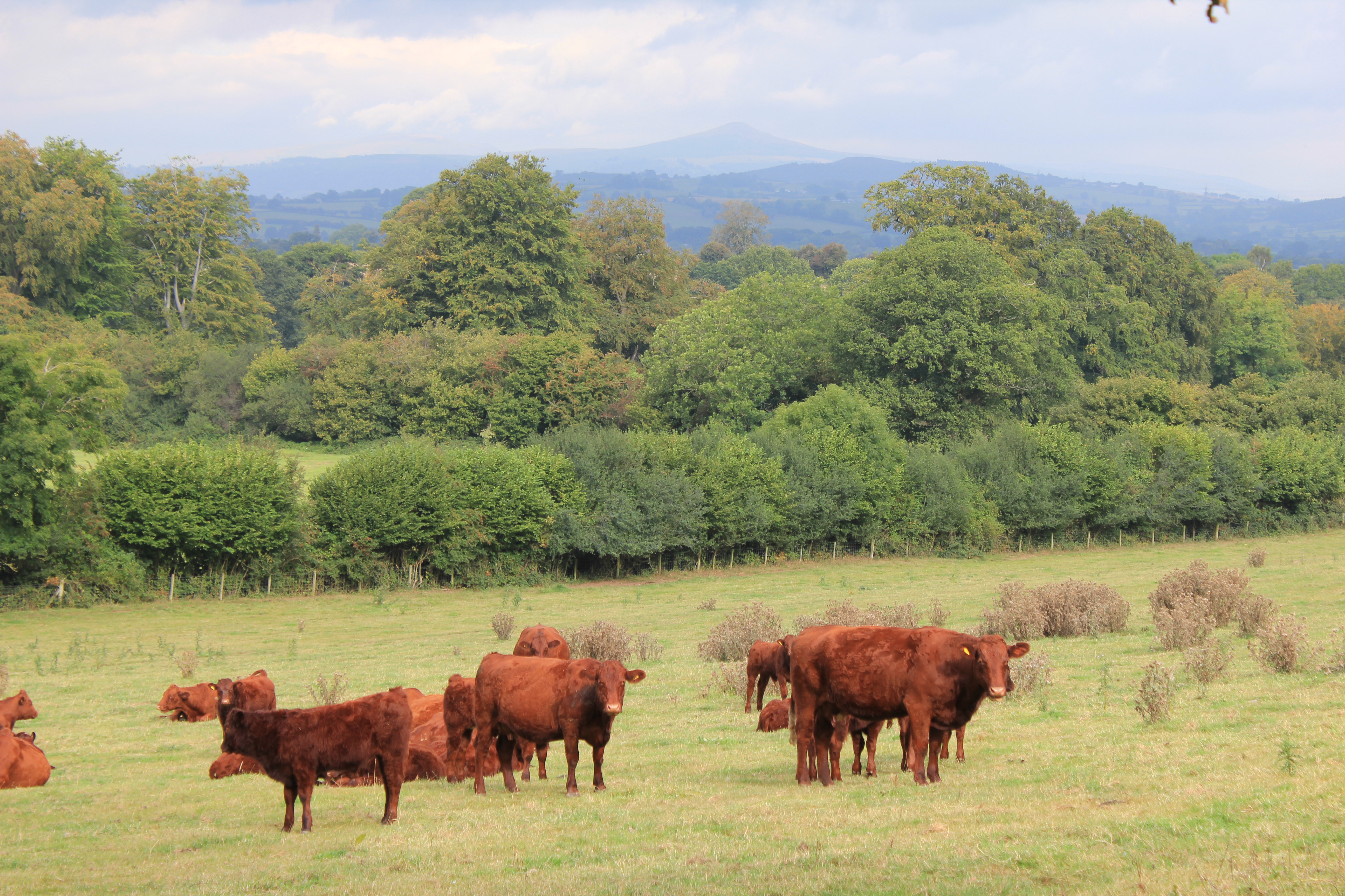 Saturday morning we are all up ridiculously early, and are out of the house well before nine. The weather is cloudy verging on hazy sunshine and the mountains have reappeared from their early morning cloud cover. Walking across the parkland, we come across some soft brown calves and their parents. They are very sweet and have dramatically deep voices. We are distracted by them and head the wrong way as we reach the road, which means we get to see the gateway of Clytha House which is rather fragile looking but once again Gothicked to death.