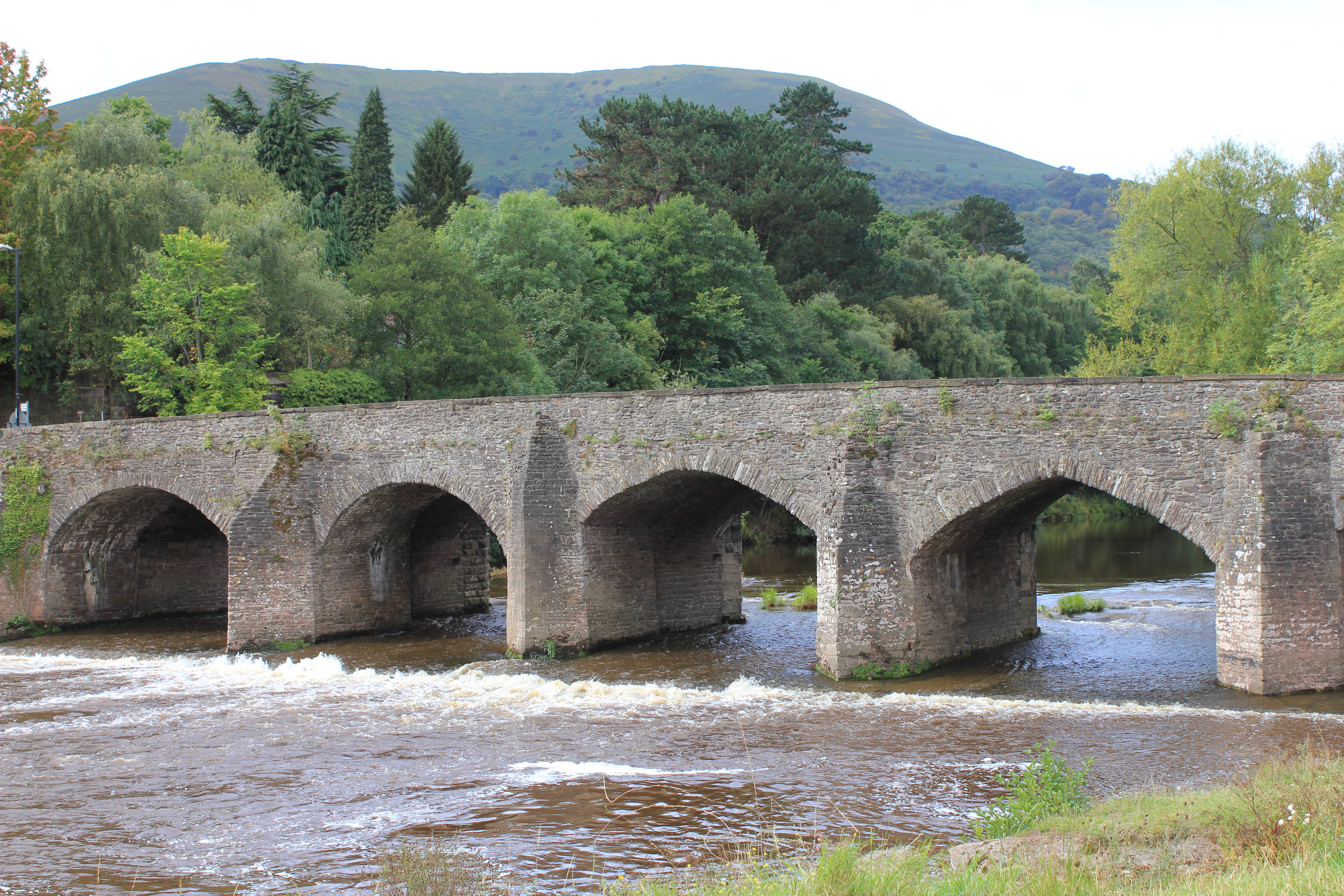 We retrace our steps and find the riverside walk along the Usk, which changes its character very quickly; one minute shallow and rapid over rocks, the next as still as a mirror. Daisy is desperate for a swim, but the sides are steep, so she is told no. Then we come to a stream and Daisy, ignoring all demands to the contrary, heads into it and from there into the river. Fortunately there is some reasonable access so she is given sticks to retrieve and comes back wet and happy. Buzzard wheel overhead, rooks, crows and a raven put in the occasional appearance.