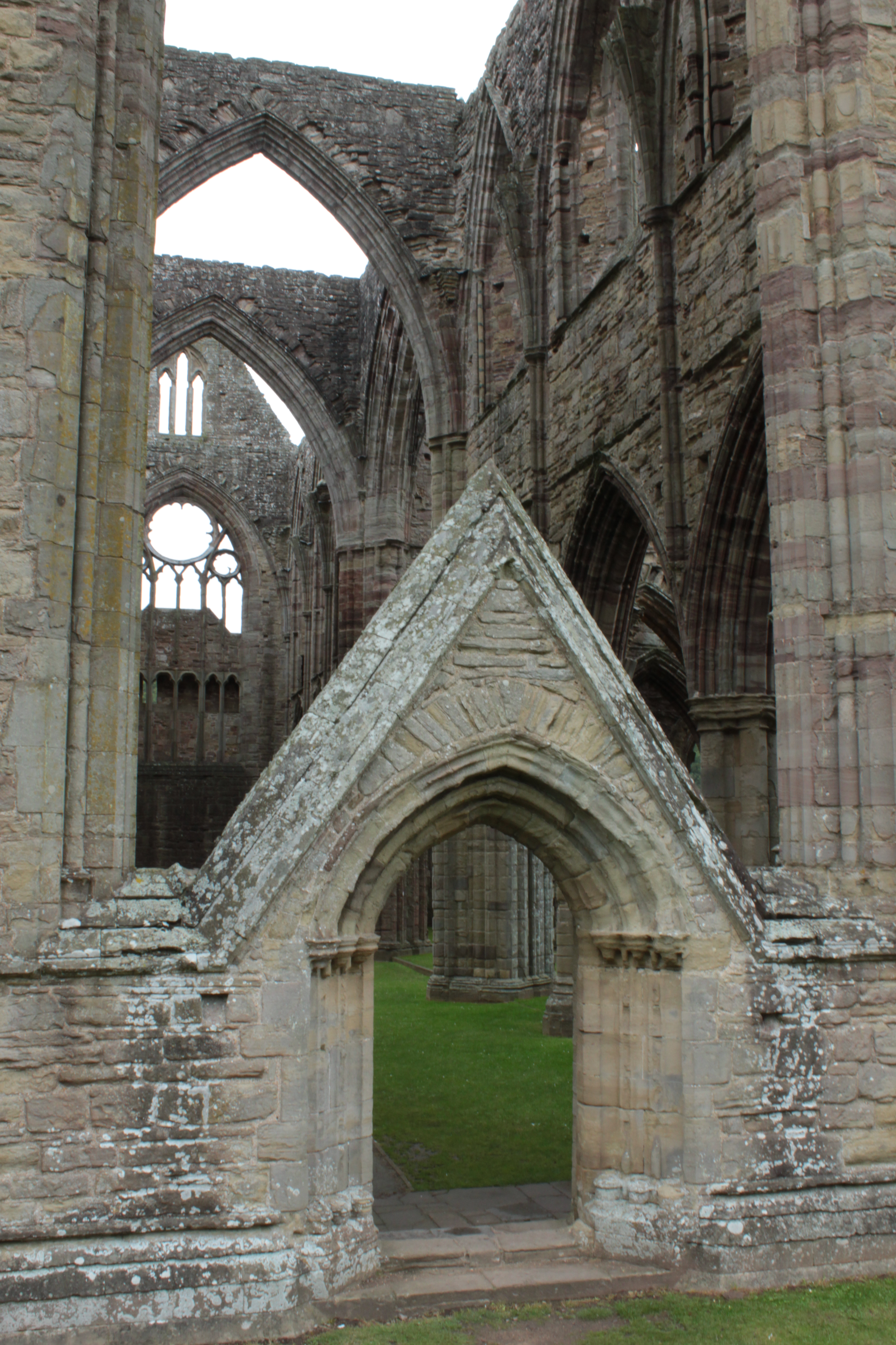 Thursday, and we wake to drizzle, which dampens our spirits a bit, but we set off for Tintern Abbey by the route the sat nav insists on despite the fact we want to go via Monmouth and the river route. It is actually very pretty, just not what we intended. It has more or less stopped raining by the time we get there, but despite this it is still grey and overcast, which actually suits the abbey well. It being many years since A & I were there we are happy to look it over again. Jn & S were there a lot more recently but manage to enjoy it again and take great amusement from suggesting the monastic lifestyle to T, who is never far from a smart phone and a bag of chocolate biscuits. We drive back the way we meant to go, but it isn’t as dramatic as we remember – the trees along the road have grown considerably and the view of the river is only glimpsed occasionally.