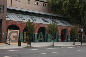 First stop Hoxton.  I’ve been to the Geffreye Museum recently so I bypass it and head for Graeae Theatre’s offices and rehearsal space, right next door.  I bump into R, who I know from BSL classes and who works there, so I get a personal tour.  The building started life as a Tram depot and stables and has great arches all along the front which make for excellent natural light and a showcase for the sculptural logo that runs the entire length of the building.