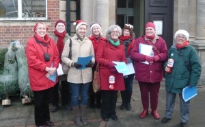Saturday Summer all Year Long went carol singing in aid of Crisis, with me muttering as we headed off that I wasn’t in favour of us performing ever again too much hassle, just meant to be a bit of fun, etc. etc. Apart from completely losing the low harmonies in Wassail, we sounded very good; I think our voices blend well and we make a nice warm noise – we even had someone tweet positively about the Crofton Park Library gig. However, a learning process: while the Library has a lovely acoustic, it’s not a great venue. The nice men selling Christmas trees outside gave us a substantial amount of their float, but most people in the library were plugged into computers and waiting for us to go away; everyone contributed something though.