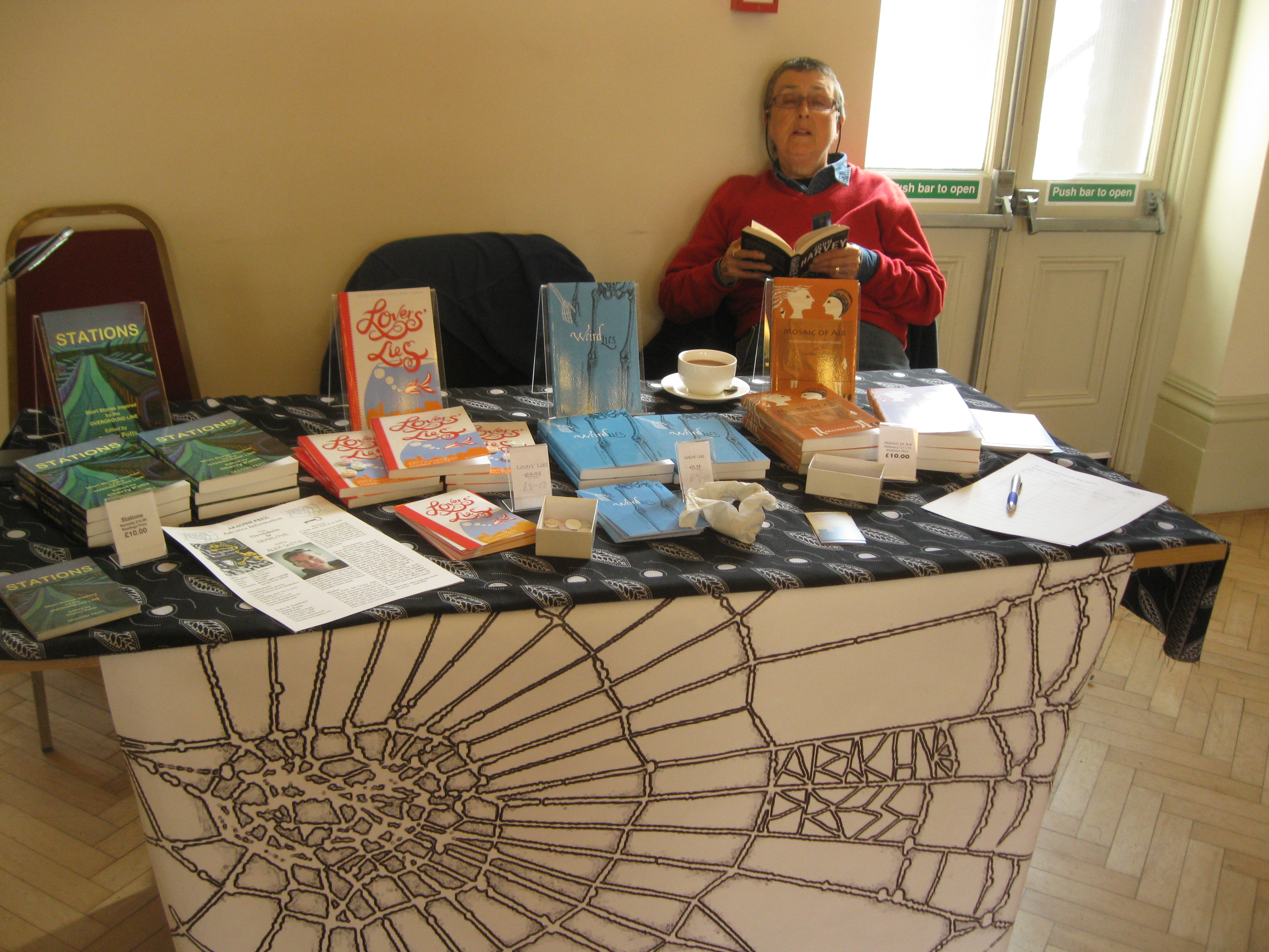 A lovely sunny day in Faversham and Alix & I are womaning the stall for Arachne Press at LEXiCON in the Alexander Centre.